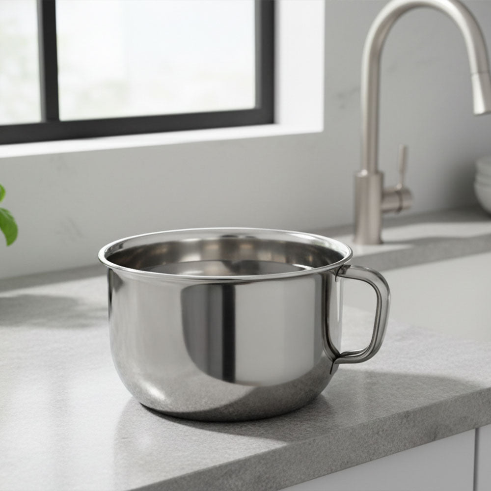 - Producto manufacturado en acero inoxidable con acabado interno lijado suave altacto y externo pulido brillante. Asa de acero inoxidable con diseño ergonómico paraun manejo cómodo y seguro. Cuenta con borde rolado que permite reforzar laestructura del pocillo. Su diseño facilita la limpieza. Ideal para uso doméstico,hospitales, instituciones e industrias.