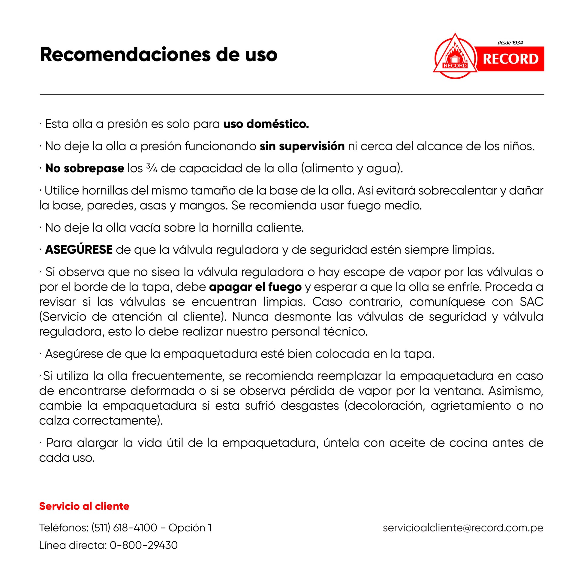 - Cuenta con cuatro sistemas de seguridad. ¡Válvula reguladora que permite regular la presión de trabajo, evidenciándose con el siseo del contrapeso, y dando inicio a la cocción de los alimentos.