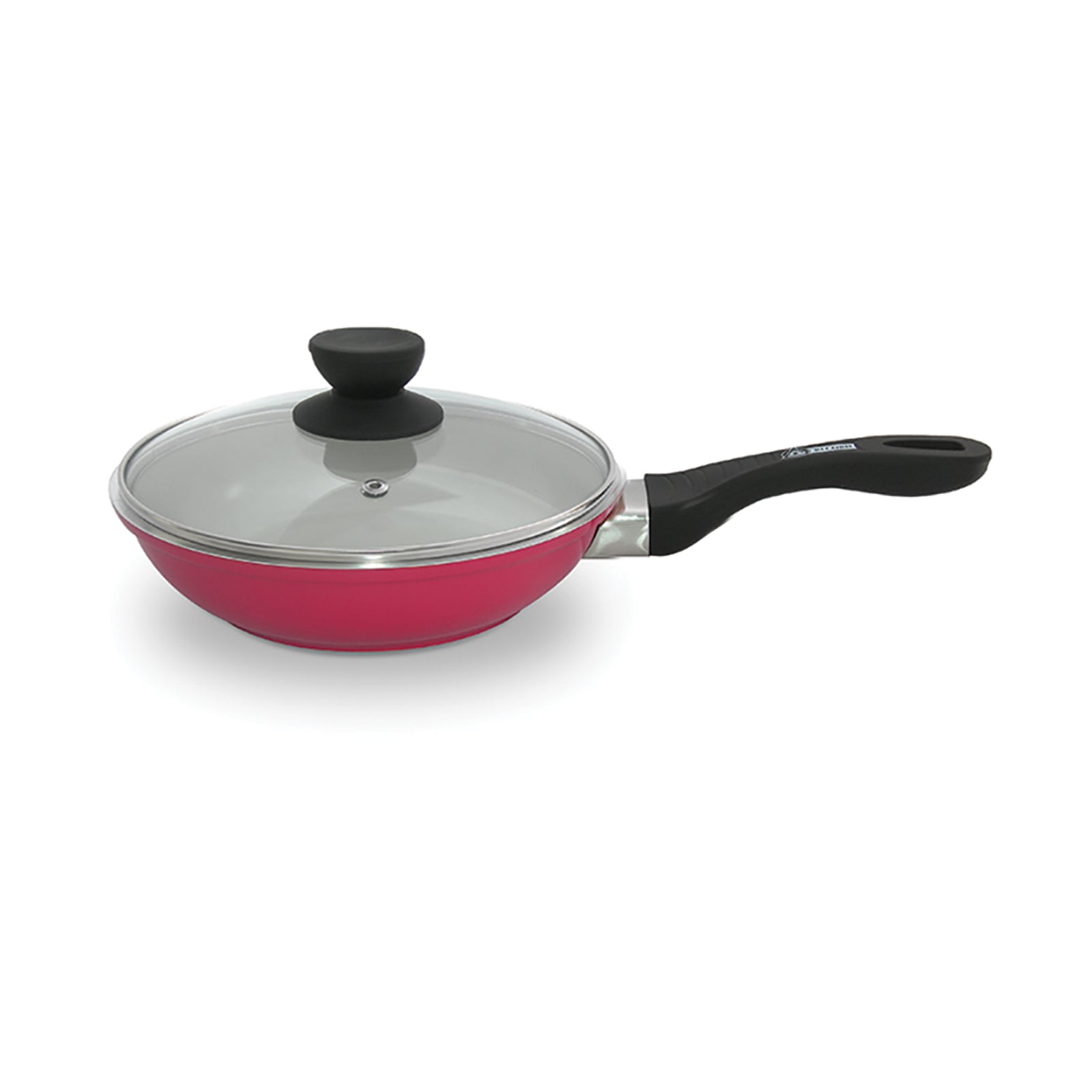 - Producto manufacturado en aluminio con recubrimiento antiadherente cerámico de color blanco al interior y roja exterior.